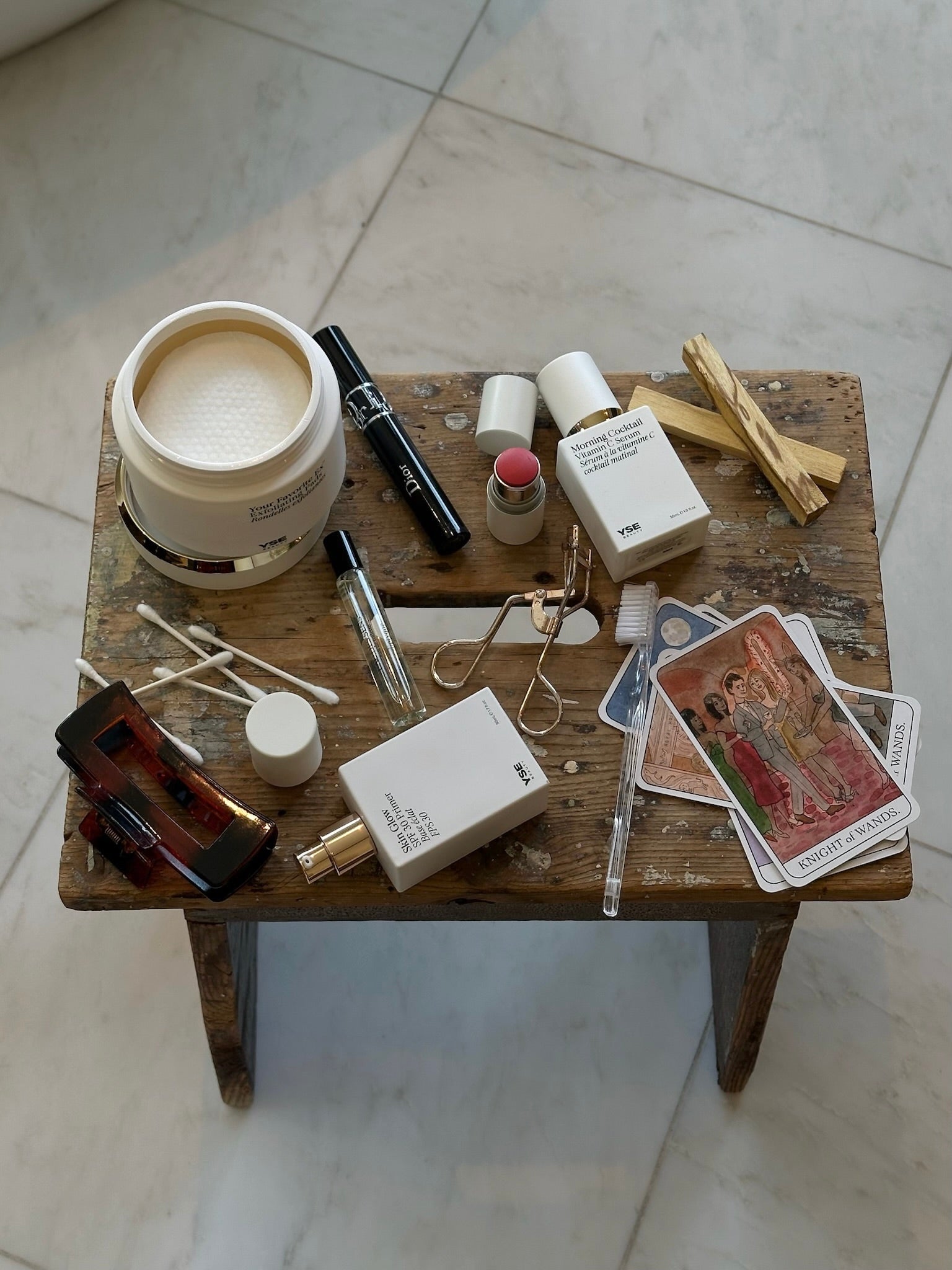 Another huge help is incorporating lymphatic drainage into your routine – it’s a great way to flush out stagnant liquid and move everything towards your lymph nodes for proper deswelling. Give yourself a loving massage towards the areas that your lymph nodes live (by the groin, armpits, and clavicle bone) in continuous strokes with medium to firm pressure. For the face, roll out to eliminate unwanted puffiness and to unveil a more sculpted surface. Use a gentle tool like the Golden Sculpt Face Roller to help encourage movement, and if you want to overachieve, chill it in a glass of ice water for a few minutes before for an added refresh.