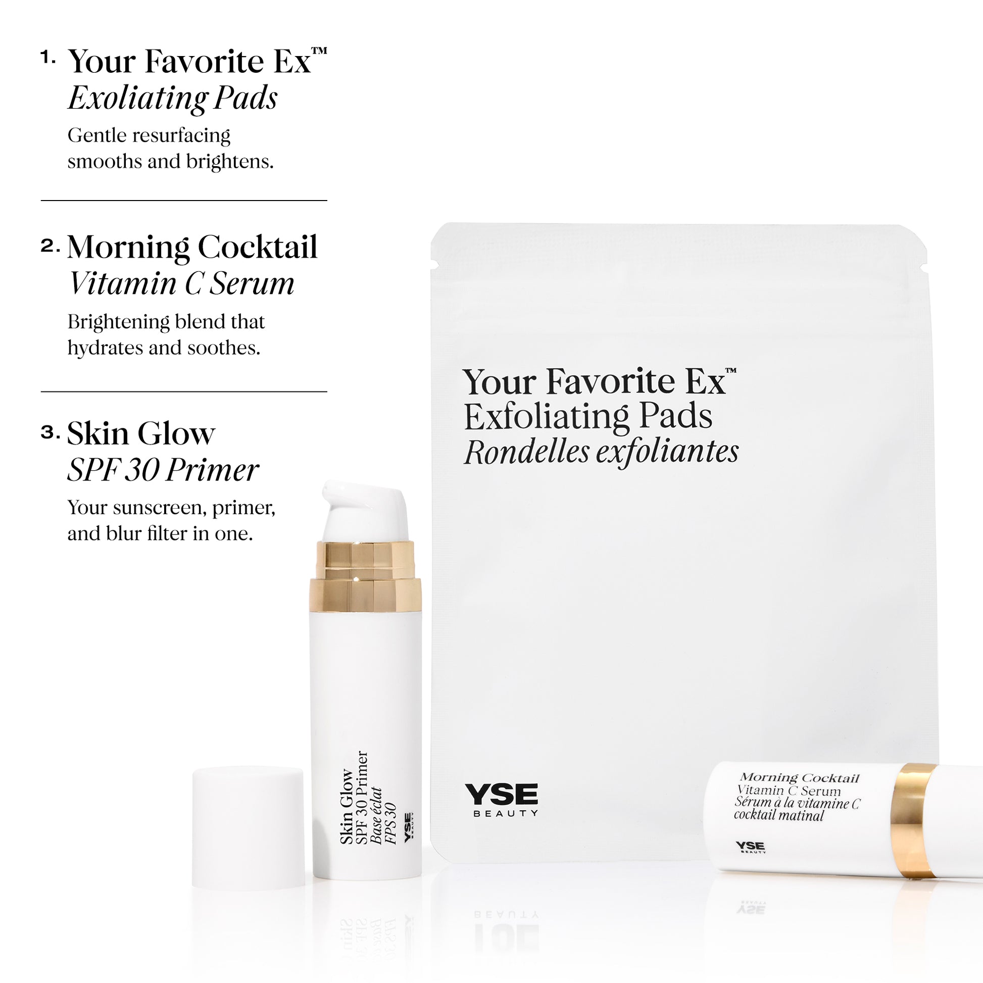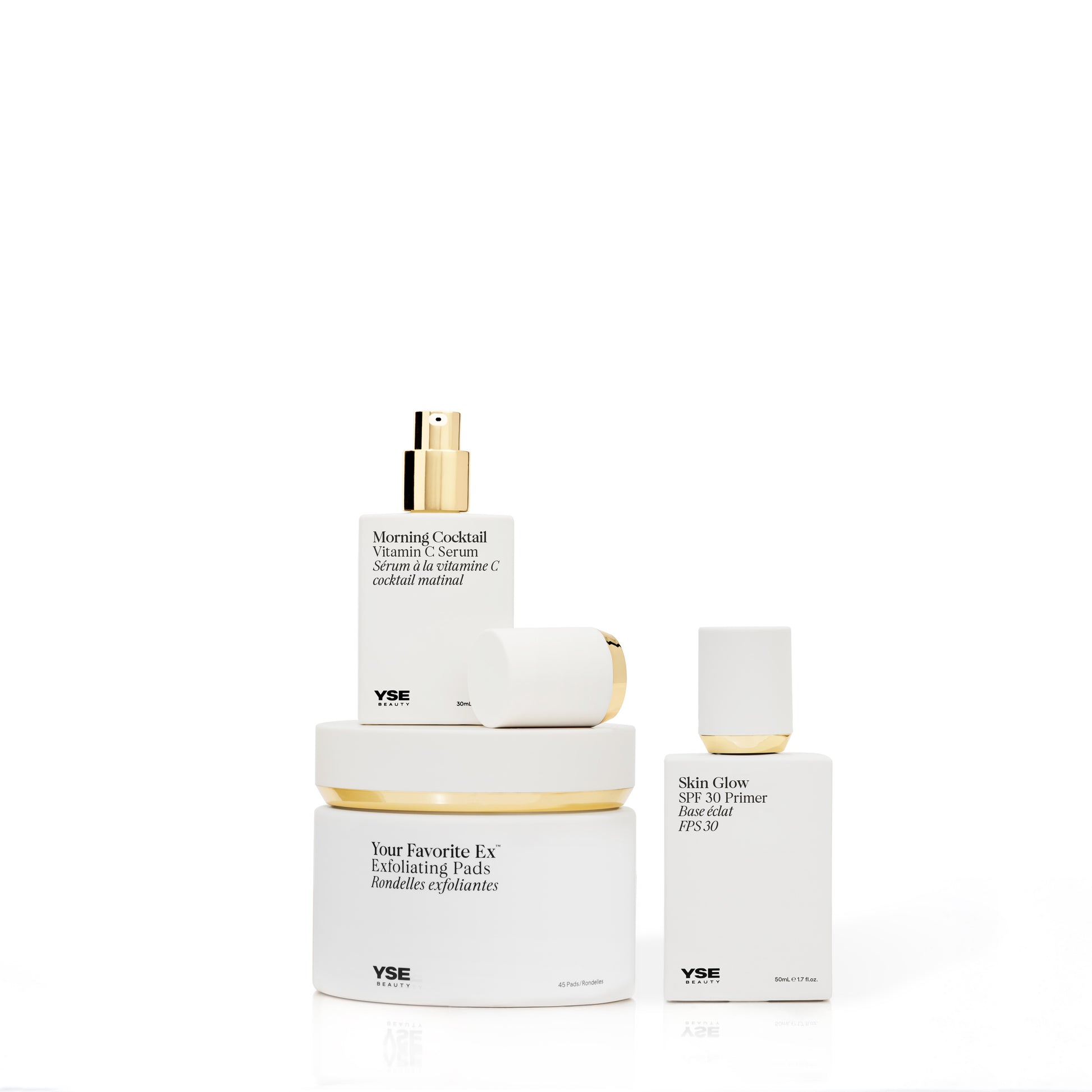Our simple and effective AM Skin Prep Set has everything that matters in a morning routine. In just 3 steps, it smooths, brightens, protects, and perfects, delivering makeup-optional skin in minutes. No drama, no downtime, just an easy, barefaced glow.