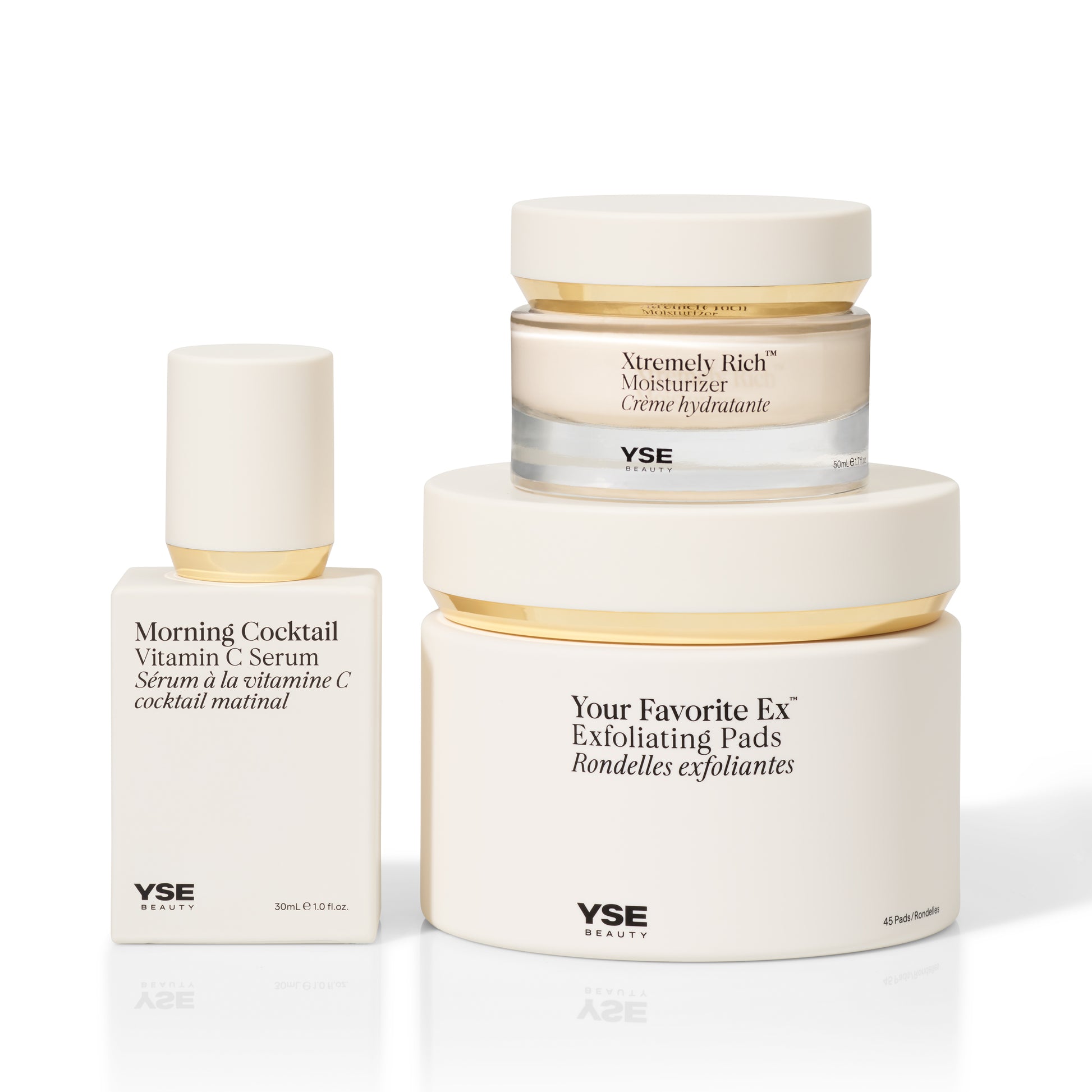 Embrace radiance with 3 forms of stabilized Vitamin C, Niacinamide, Squalane and Hyaluronic Acid that work to brighten, smooth + even skin tone.